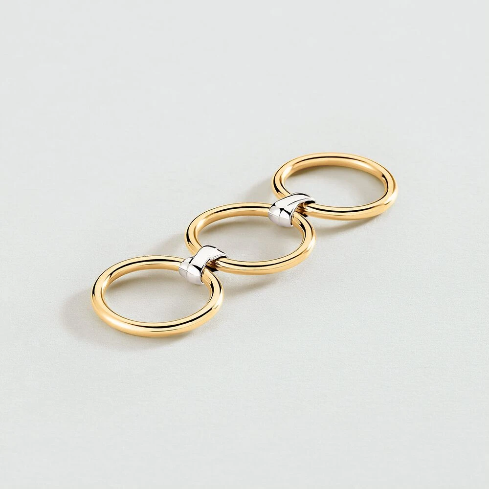 Bague en argent 925/1000 doré à l’or 750/1000 avec de petite croix en argent 925/1000 rhodié.