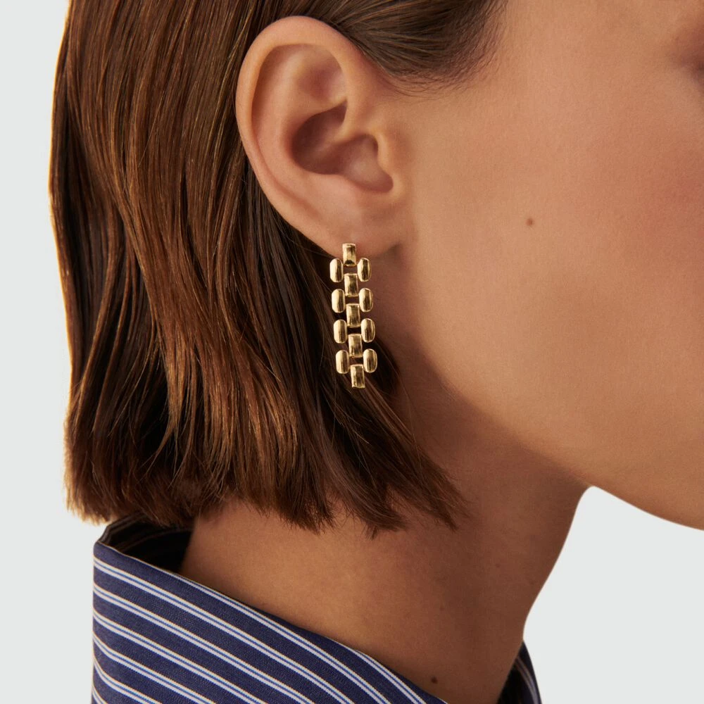 Boucles d’oreilles pendantes en étain doré à l’or 750/1000, maille montre..