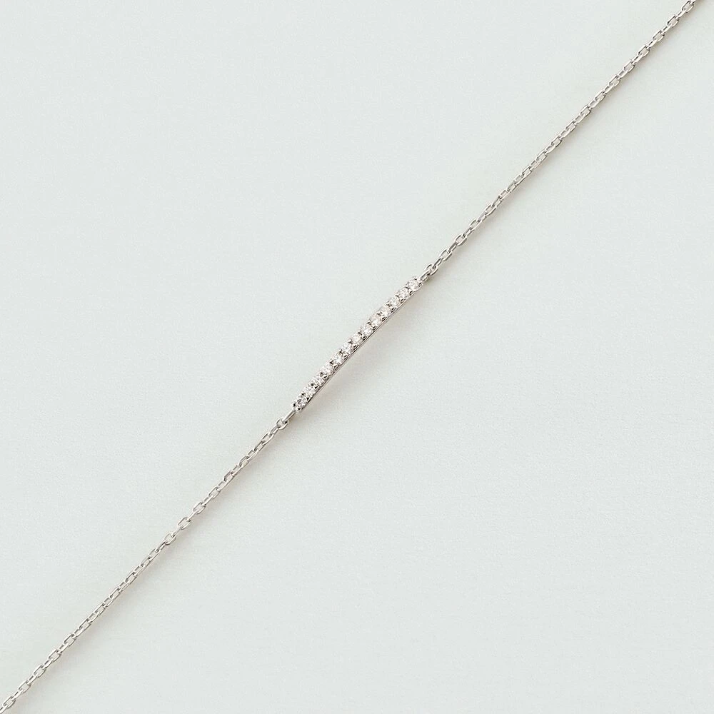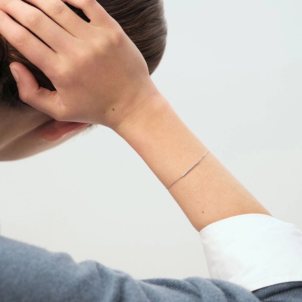 Bracelet souple en argent véritable orné d’une petite barre rigide pavée d’oxydes de zirconium.