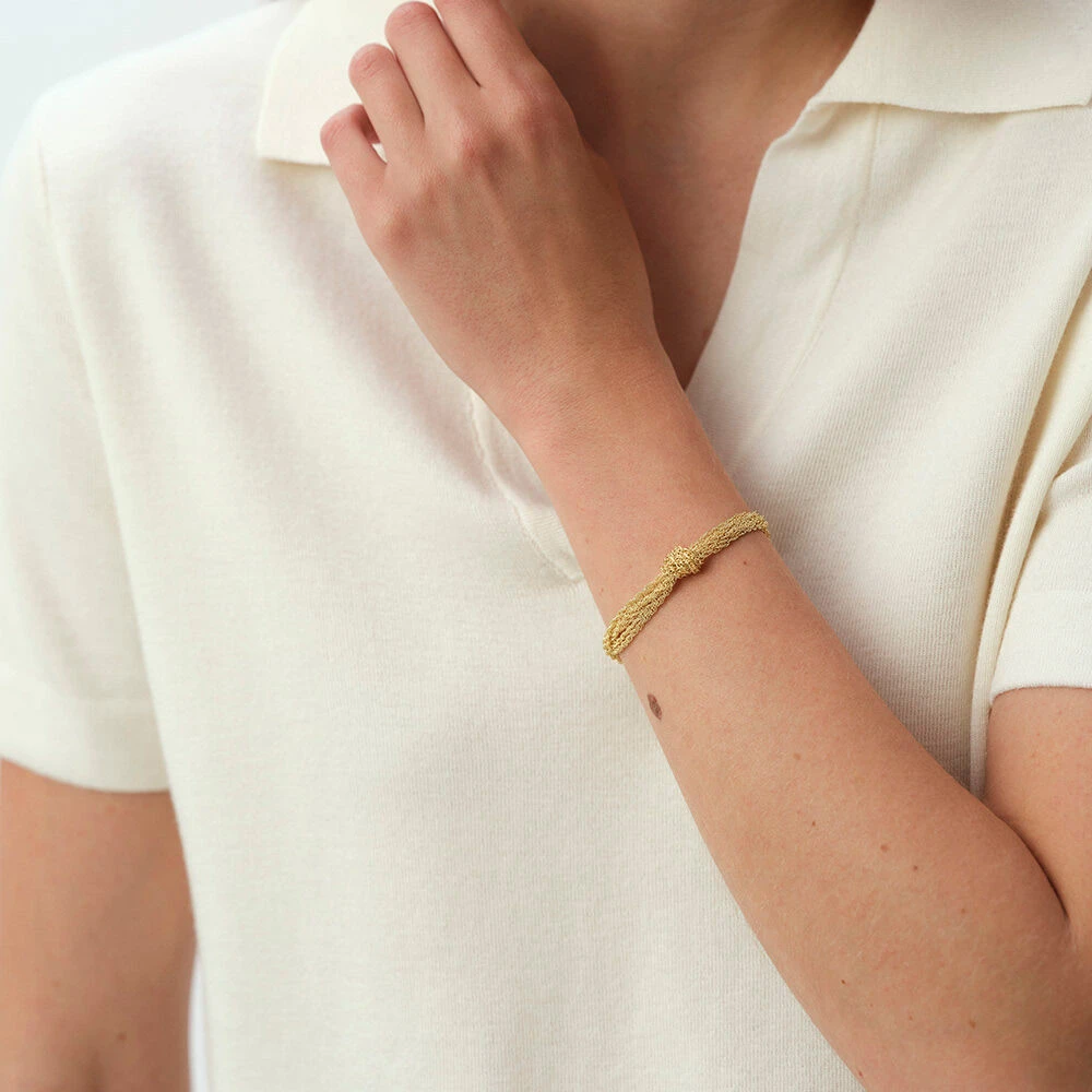 Bracelet noeuf de chaînes en laiton doré à l’or fin.