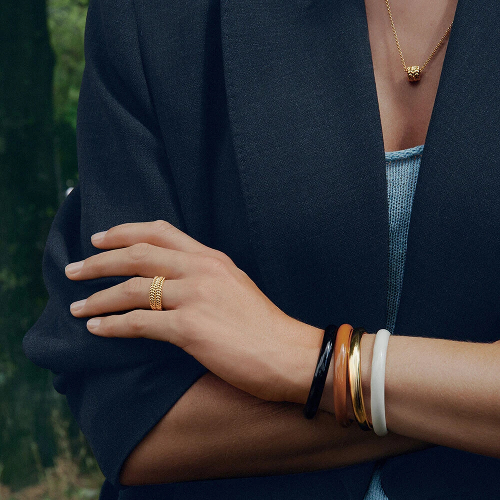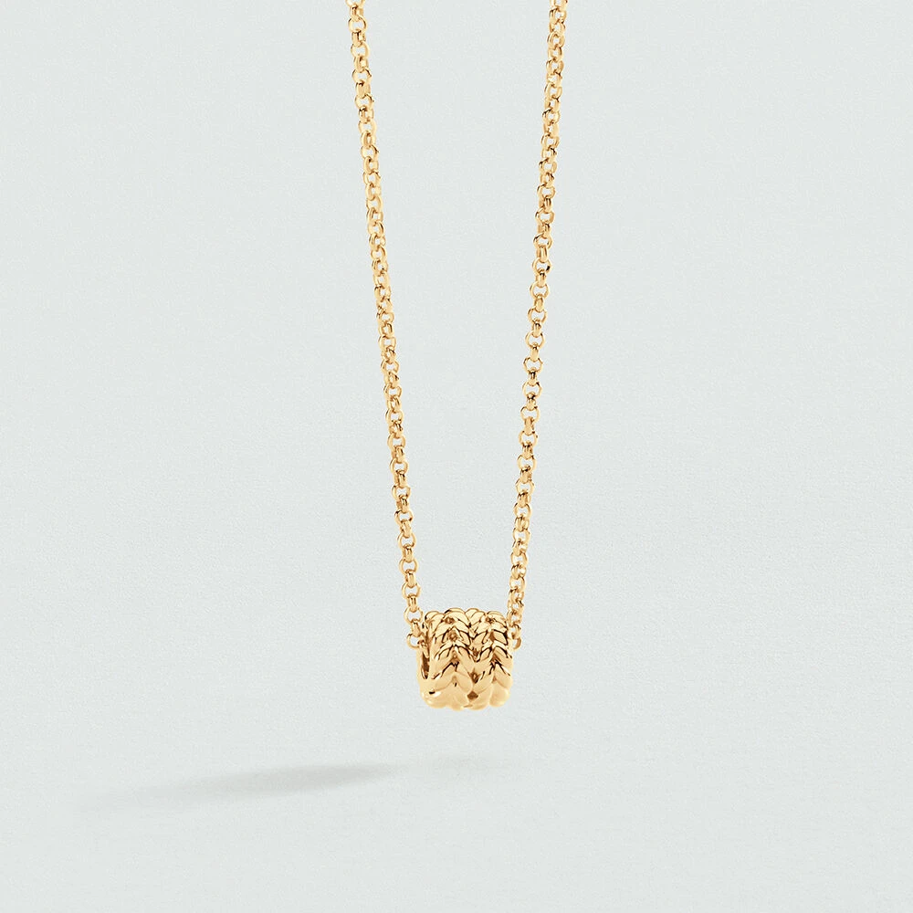 Collier en laiton doré à l’or fin monté d’un pendentif donut torsadé.