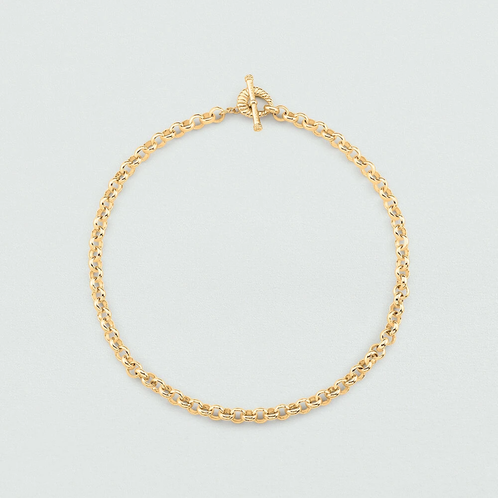 Collier en laiton doré à l’or 750/1000 fait d’une maille jaseron épaisse..