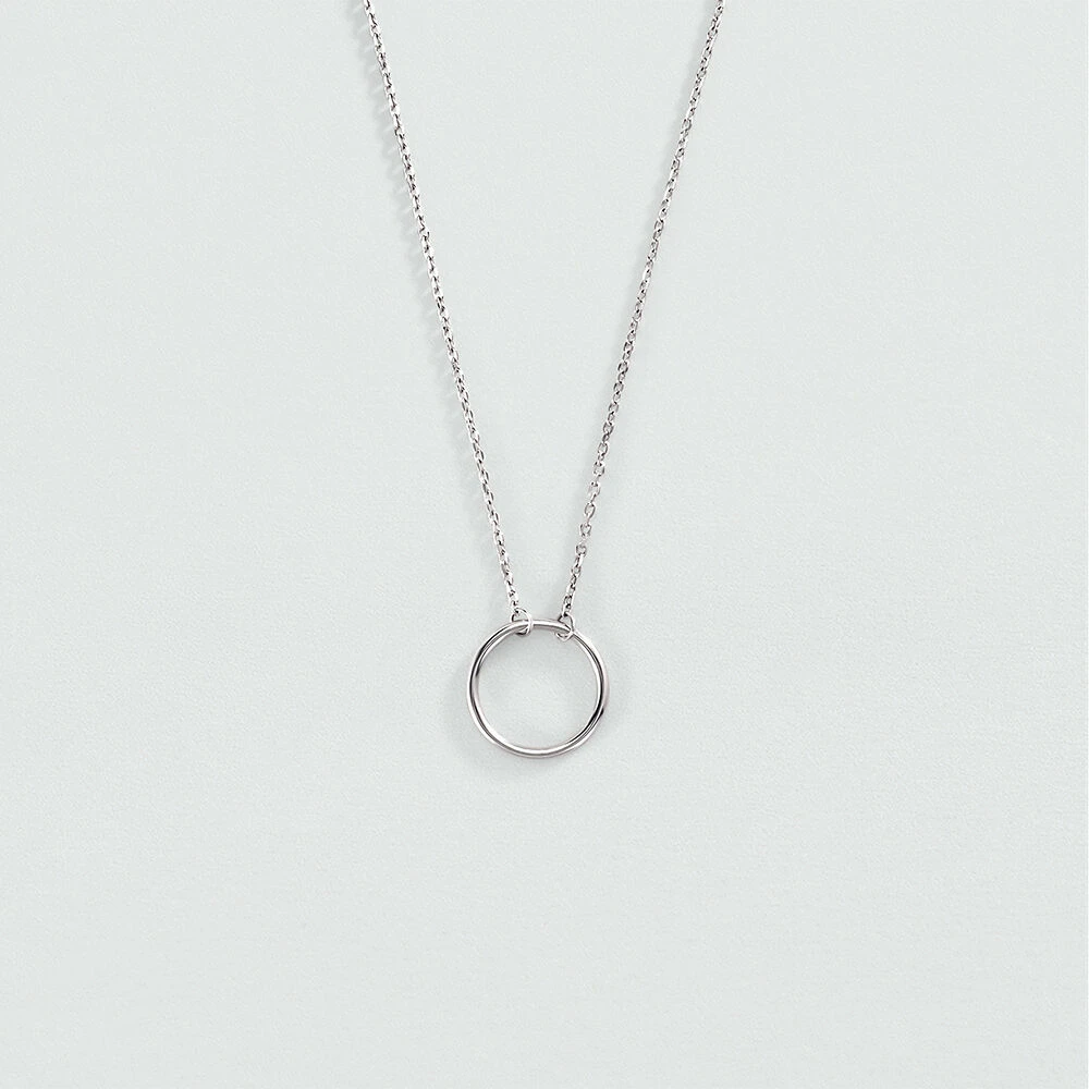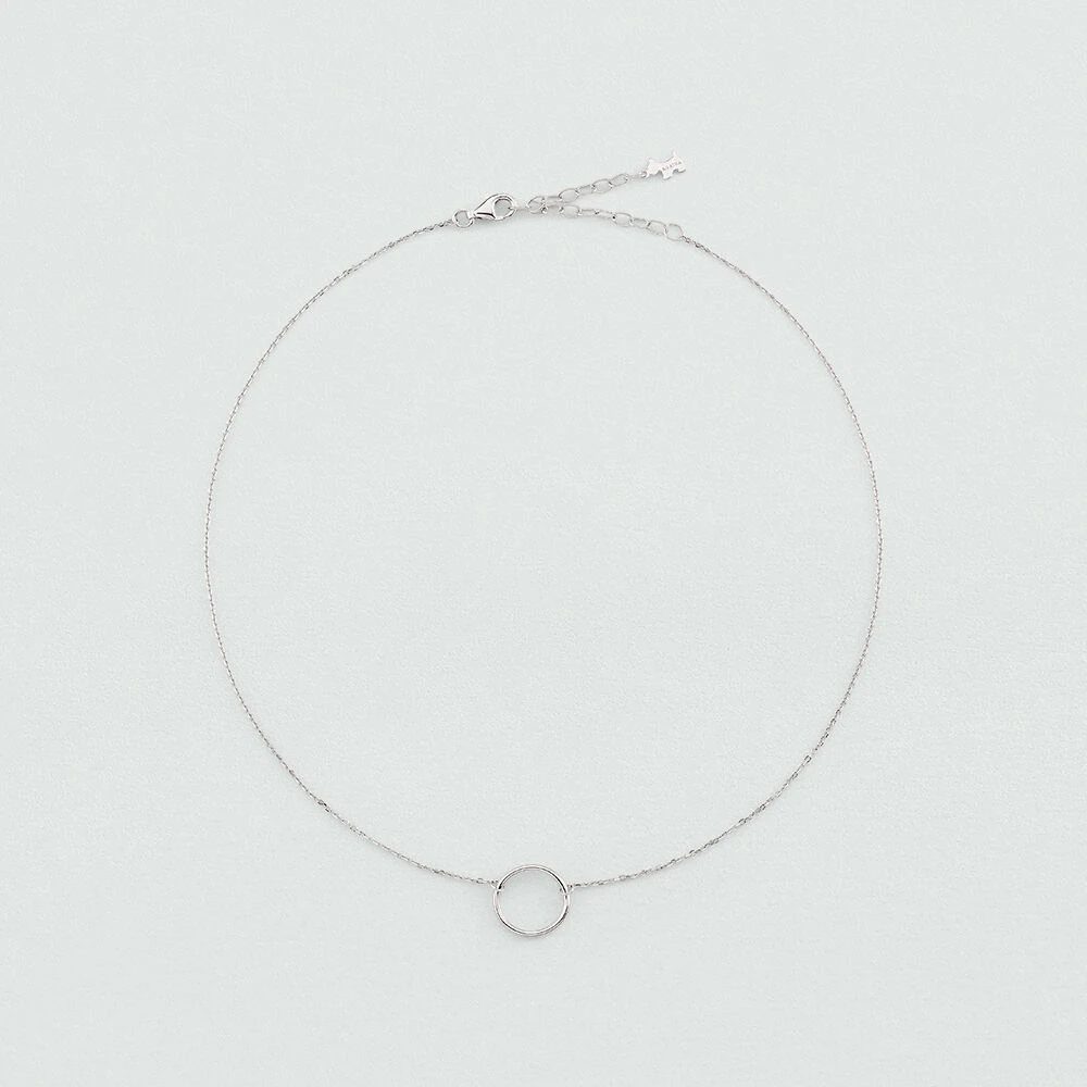 Collier court, en argent véritable, avec un anneau évidé monté sur une chaine fine.