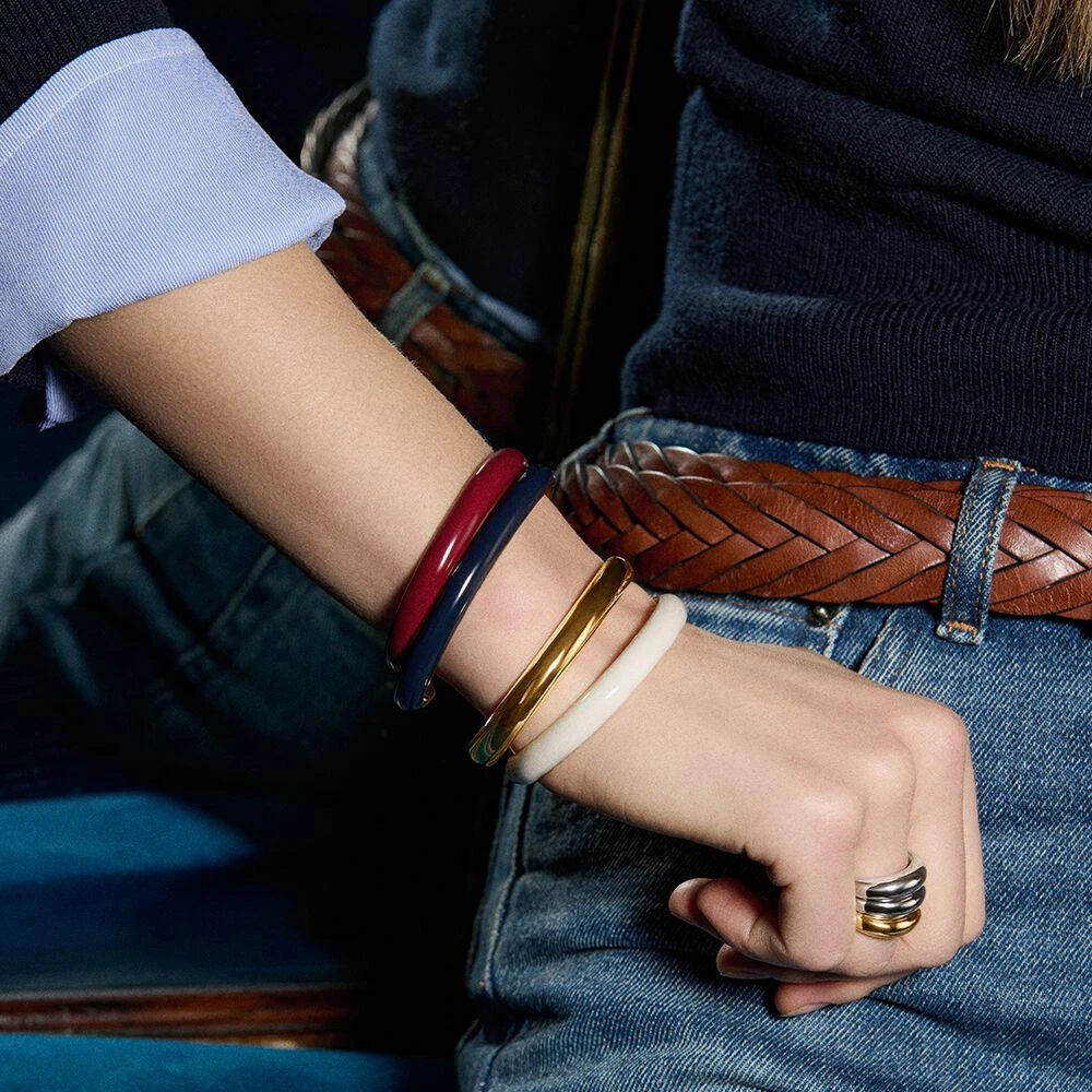 Un bracelet jonc en acier inoxydable au design épuré et minimaliste.