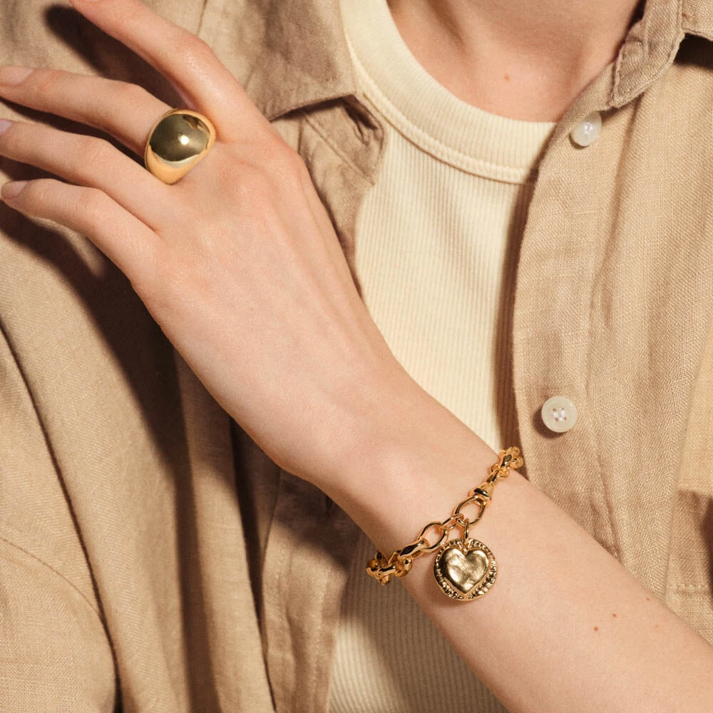 Médaille en étain doré à l’or 750/1000 représentant un cœur. Made in France. Créez votre bijou unique et personnalisé en l’associant à d’autres pendentifs charms et à la chaîne de votre choix.