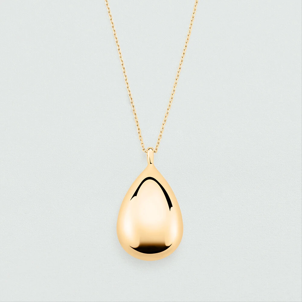 Collier long en laiton doré à l’or 750/1000 avec un gros pendentif goutte.. Ce bijou mesure 600mm et contient une rallonge de 100mm
