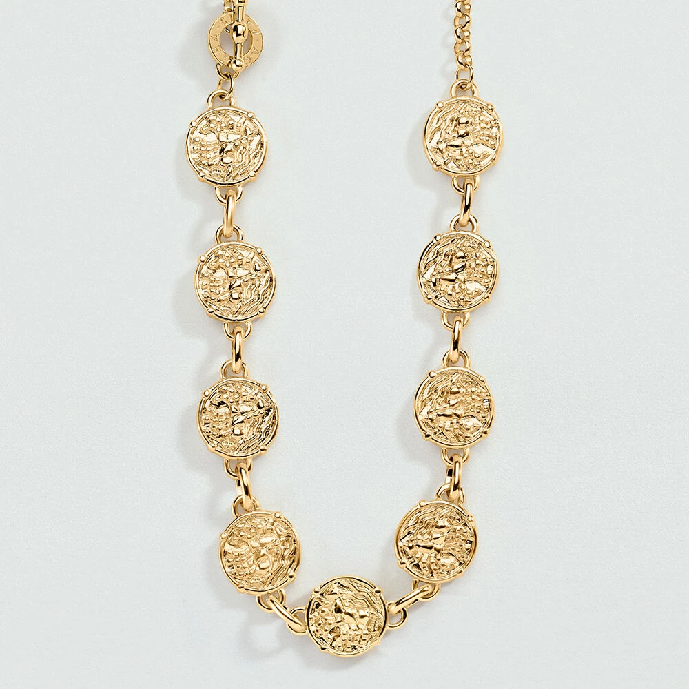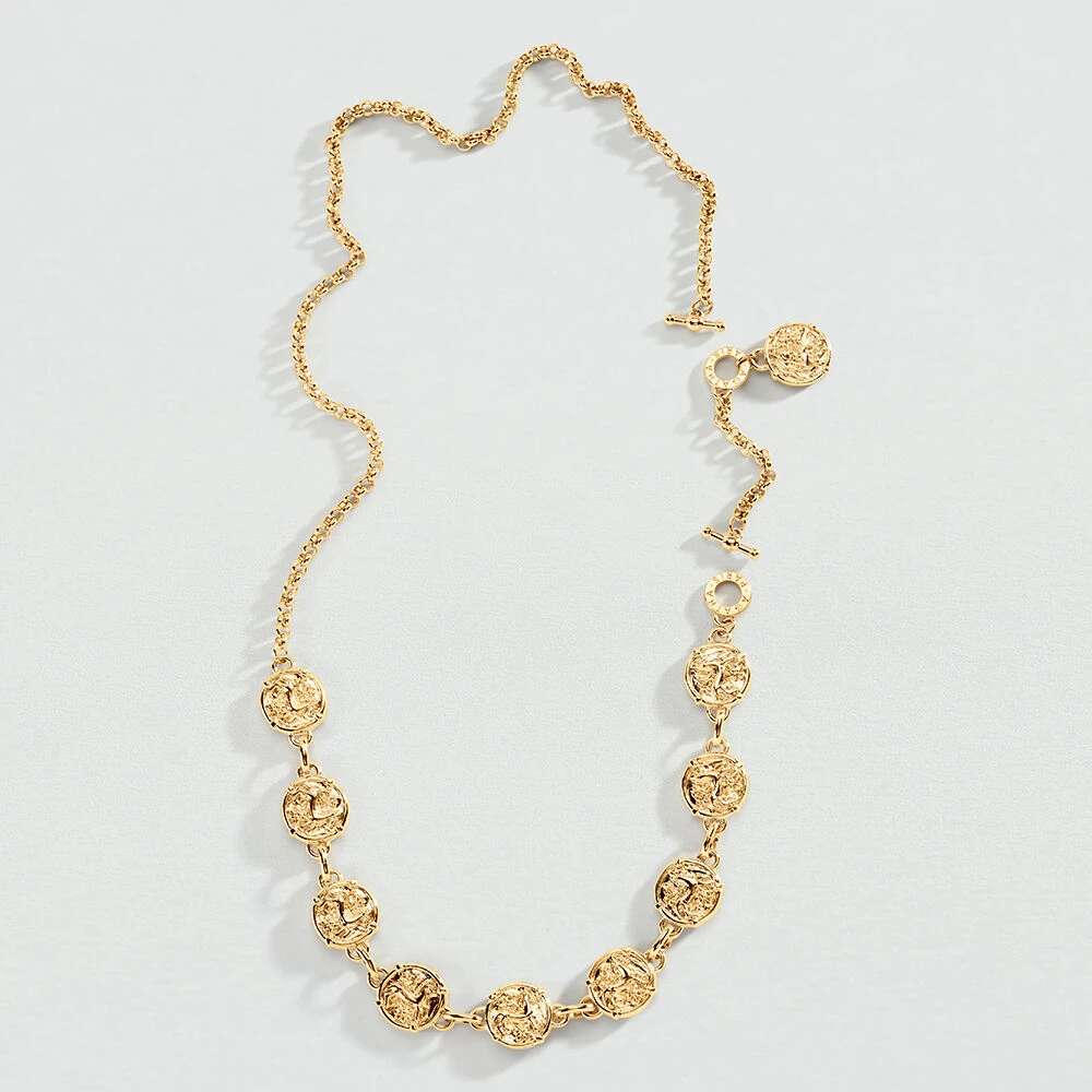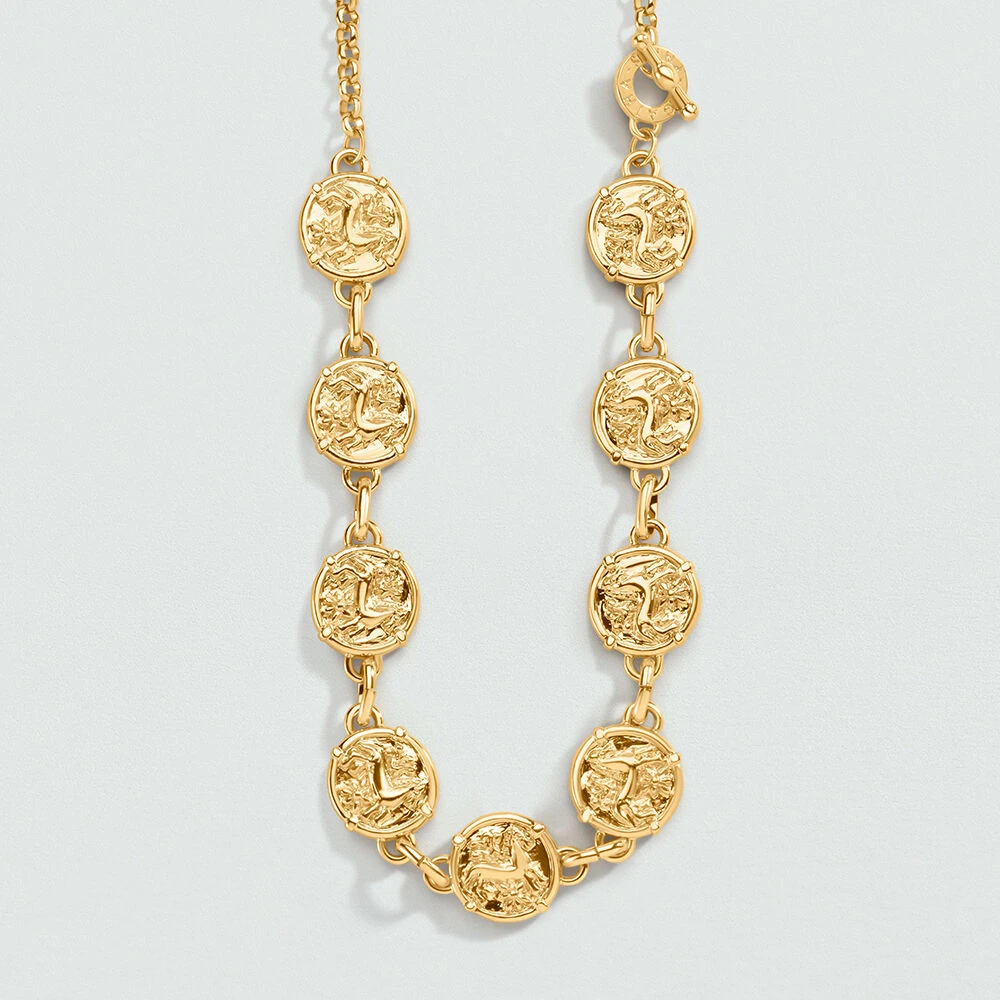 Ceinture en métal doré à l’or fin avec des médailles symbolisant un cheval.